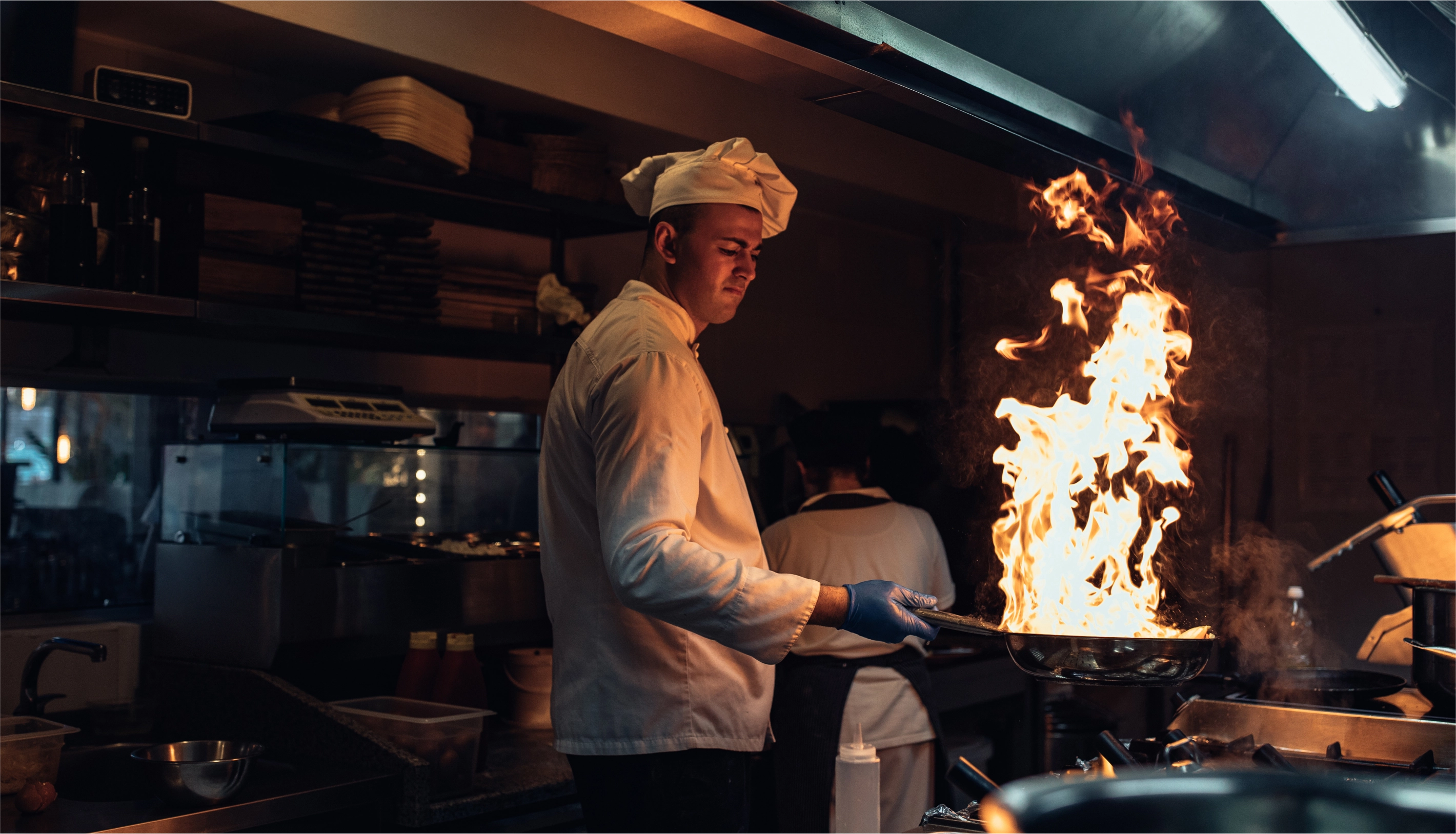 Cozinhas e bares projetados para velocidade e adequação sanitária.